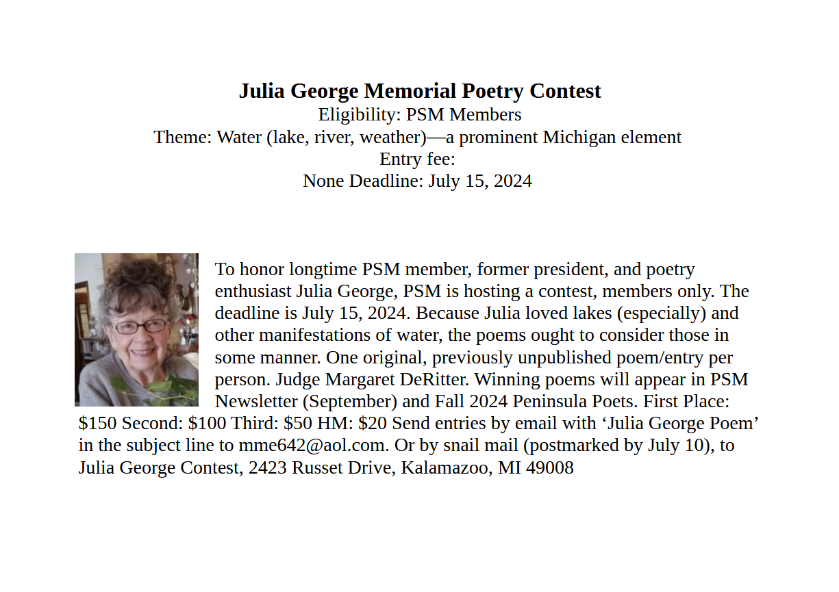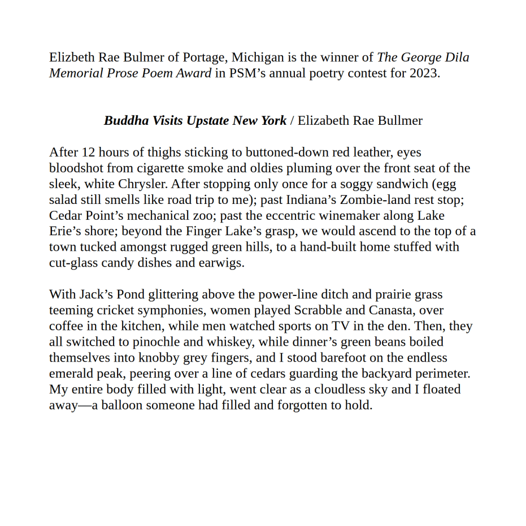 Roberta Brown is the winner of the 2025 Margo LaGattuta Memorial Award in PSM’s annual poetry contest.