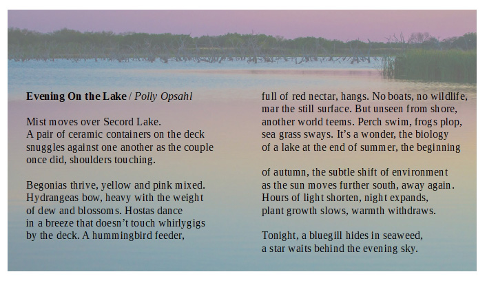 A prize winning poem in the category “Evening” from the fall issue of Peninsula Poets, the annual contest issue from The Poetry Society of Michigan.